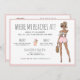 Watercolor bachelorette beach party weekend invitation features watercolor blonde bride-to-be. Event details on back of invitation. Can be customized for any event. Lingerie sizes on back for gifts or panty game.