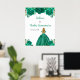 This Quinceanera welcome poster features faux glitter green floral flowers and a beautiful princess with blonde hair and an elegant dress. This is perfect for a Quinceanera birthday party.