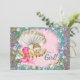 Mermaid baby shower invitations with adorable baby mermaid in a pretty clam shell on a beautiful purple, pink and teal blue under the sea background. You can easily customize these beautiful mermaid baby shower invitations for your event by simply adding your event details in the font style and wording of your choice. This is a printed design with no real glitter, jewels, etc.