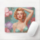 Blonde Pin-Up Pastel Flowers Mouse Pad