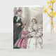 This card is based on an illustration by Laure Noel, one of the great fashion design illustrators of the 19th Century. A beautiful blonde bride receives a book from a little girl in a pink dress.