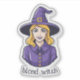 This is a cute halloween sticker that features a blonde woman with a purple witch hat. You can customize the default text "blonde witch".