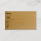 Business card printed over a background photo of varnished blonde coloured wood. For carpenters, furniture makers, furniture sellers, floor installers.