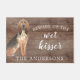 Funny beware of the wet kisser" BloodHound Dog door mat set on a rustic faux background. Visit our shop to view a large assortment of dog breads
