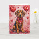 Bloodhound Valentine Dog Sitting with Hearts Red Card