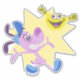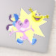 This whimsical graphic from "Inside Out 2" features the playful characters Bloofy and Pouchy, exuding joy and exuberance. Bloofy and Pouchy are from Riley's favourite childrens TV show "Bloofy's House". Bloofy, with his vibrant purple hue and large, beaming smile, leaps joyfully against a bright yellow starburst background, while Pouchy, in a vivid green, floats alongside with a cheeky grin. Their dynamic poses and cheerful expressions capture the essence of their characters, bringing a sense of fun and lightheartedness. This illustration perfectly conveys the infectious enthusiasm and creativity that these characters bring to the film, making it a delightful visual treat for fans of all ages.