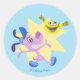 This whimsical graphic from "Inside Out 2" features the playful characters Bloofy and Pouchy, exuding joy and exuberance. Bloofy and Pouchy are from Riley's favourite childrens TV show "Bloofy's House". Bloofy, with his vibrant purple hue and large, beaming smile, leaps joyfully against a bright yellow starburst background, while Pouchy, in a vivid green, floats alongside with a cheeky grin. Their dynamic poses and cheerful expressions capture the essence of their characters, bringing a sense of fun and lightheartedness. This illustration perfectly conveys the infectious enthusiasm and creativity that these characters bring to the film, making it a delightful visual treat for fans of all ages.