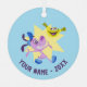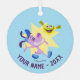This whimsical graphic from "Inside Out 2" features the playful characters Bloofy and Pouchy, exuding joy and exuberance. Bloofy and Pouchy are from Riley's favourite childrens TV show "Bloofy's House". Bloofy, with his vibrant purple hue and large, beaming smile, leaps joyfully against a bright yellow starburst background, while Pouchy, in a vivid green, floats alongside with a cheeky grin. Their dynamic poses and cheerful expressions capture the essence of their characters, bringing a sense of fun and lightheartedness. This illustration perfectly conveys the infectious enthusiasm and creativity that these characters bring to the film, making it a delightful visual treat for fans of all ages.