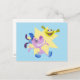 This whimsical graphic from "Inside Out 2" features the playful characters Bloofy and Pouchy, exuding joy and exuberance. Bloofy and Pouchy are from Riley's favourite childrens TV show "Bloofy's House". Bloofy, with his vibrant purple hue and large, beaming smile, leaps joyfully against a bright yellow starburst background, while Pouchy, in a vivid green, floats alongside with a cheeky grin. Their dynamic poses and cheerful expressions capture the essence of their characters, bringing a sense of fun and lightheartedness. This illustration perfectly conveys the infectious enthusiasm and creativity that these characters bring to the film, making it a delightful visual treat for fans of all ages.