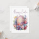 A pastel Easter egg is nestled among vibrant spring flowers, with a cheerful orange bird perched nearby. This elegant card blends seasonal symbols with artistic flair, perfect for sending Easter blessings with style