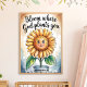 A watercolor illustration of a sunflower with a smiling face. The sunflower is in a vase filled with water. Above the sunflower is the text "Bloom Where God Plants You.". The background is a beige wall.