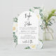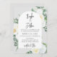 Our Bloom Wedding Invitation is part of our Bloom Wedding Collection and features a beautiful bouquet of white roses and baby's breath behind an arch with your wedding details listed in elegant modern calligraphy with traditional fonts. This wedding invitation is perfect for spring, summer, fall and winter weddings.