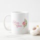 A white cup with an elegant design bearing the phrase 'Bloom with Grace', adorned with a delicate rose illustration that adds a touch of beauty and tranquility. Its simple design reflects elegance and sophistication, making every sip of coffee or tea a moment full of inspiration. An ideal choice for lovers of subtle taste, or as a gift that expresses optimism, growth, and gentleness.