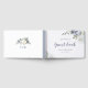 Romantic watercolor botanical floral and greenery in soft yellow, dusty blue, and grey, elegant and romantic, great wedding guest book for modern wedding, romantic wedding, and botanical garden wedding.