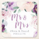 Blooming botanical purple floral Mr & Mrs Square Paper Coaster