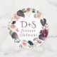 Rustic hand-painted rich, dark, and moody watercolor floral wreath round frame featuring the couple's monogram initials for a modern romantic flair with flowers in burgundy, marsala, and wine reds with plum purple and blush pink and peach rose peonies embellished by botanical laurel eucalyptus greenery and deep accents in olive green and violet purple undertones. From the "Moody Fig Blossoms" collection comes this gorgeous layout of trendy Bohemian-inspired fig and wildflower frame adorned with modern script initials and purple, pink, and green radiant flower blooms and eucalyptus greenery foliage. For customizations or other colours, please visit the store or contact the designer, Fharryn, c/o JustFharryn@yahoo.com #bohochic #zazzlemade