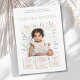 Celebrate your little one’s first year with a touch of elegance and charm! This beautifully designed first birthday invitation features a delicate frame of soft pale pink petals and gentle pale green leaves, perfectly embracing a cherished photo of your sweet birthday girl.