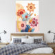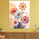 A vibrant floral canvas print featuring colourful blossoms in shades of blue, pink, red, and orange with delicate patterns, creating a cheerful and modern botanical artwork.