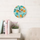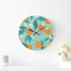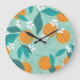 Blooming oranges, leaves, vintage art. large clock