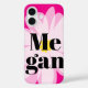 Blooming pink daisy flower custom iPhone 16 case. Custom phone covers with personalized name. Cool gift idea for friends and family.