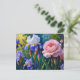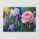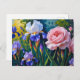 Blooming Roses and Purle Iris Flowers Holiday Postcard