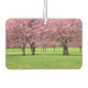 Picturesque blooming Sakura Trees with pink blossoms and a fresh light green lawn underneath them. Spring is coming, can you smell it?