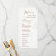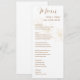 Celebrate your love story with a menu that's as beautiful as it is functional. This design features a crisp white background adorned with delicate gold flowers, complemented by a whimsical script announcing your culinary delights.