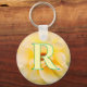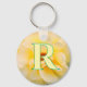 Blooming Yellow Rose custom monogram keychain. Floral photography design. Macro shot of yellow rose flower. Personalize with custom name initial or text.