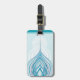 A design hand drawn with pens, coloured pencils, and crayons. The original design was produced in turquoise, sky blue and lavendar hues, while variations include a rainbow of colours. The drawing creates a pendulous ornament of interlocking strips that knot together and overlap in a loose symmetrical teardrop shape, highlighted with metallic silver lines.