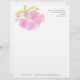 Pretty double spring blossom watercolor botanical fine art painted letterhead. Flowers in pretty shades of light pink and green leaves on a white background, customize with your own address details and contact information along the bottom of your letterheads, ideal for floral or plant businesses, weddings and thank yous. Printed from an original watercolor painting by Sarah Trett www.sarahtrett.com for www.mylittleedenweddings.com