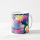 A bold, painterly garden bursting with blooming flowers in pink, blue, and purple.