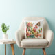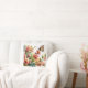 'Blossom Whispers' is a delicate watercolor painting that captures the vibrant essence of spring. A lively butterfly with intricate wing patterns flutters amidst a cluster of blooming flowers. The artwork is marked by a vivid palette of reds, greens, and yellows, suggesting the lively growth and renewal of the season. Splashes and speckles of paint create a sense of movement and spontaneity, evoking the fleeting moments in nature. This pillow would make a serene addition to any living space, bringing the charm of a blossoming garden indoors.
