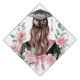 Celebrate your academic achievement with this beautifully designed graduation cap topper. Featuring a stunning illustration of a graduate with flowing hair, adorned in a cap and gown, surrounded by vibrant pink roses and lush green leaves. The cap is personalized with the word "GRADUATE" and the year "20XX," making it a perfect keepsake for this momentous occasion. The soft pink bow adds a touch of elegance and charm, symbolizing the blossoming future that lies ahead. This cap topper is not only a stylish accessory but also a meaningful reminder of your hard work and dedication.