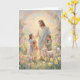 Celebrate the tender joy of Easter with this delightful card featuring a pastel painting of Jesus standing in a blooming field, smiling warmly as happy children gather around him with radiant faces. Gentle lambs and playful bunnies dot the lush grass, while vibrant flowers, blossoms, and a graceful arch frame the scene in soft hues of springtime renewal and love. The image captures the simple, heartfelt connection between the risen Savior and those He cherishes, inviting all to share in His light and peace. Perfect for expressing gratitude, hope, and the quiet beauty of resurrection life with loved ones.