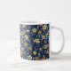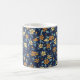 Elegant coffee mug in moody navy blue with pops of yellow and orange – perfect for gifting and your morning coffee.