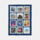 Blue 11 Photo Collage Mosaic Square Frame Monogram Fleece Blanket