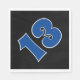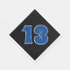 This paper napkin design features the number "13" coloured blue, with a white outline. Paper napkins like these might be fun to use at a celebration being held to commemorate somebody’s thirteenth birthday, or perhaps a couple’s thirteenth wedding anniversary, or some other 13th event. [~Z0000340]