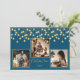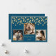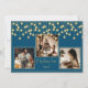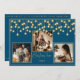 “Christmas time” in beautiful faux gold script on a beautiful rich blue background. Replace photos with 3 of your favourite photos. Gold faux string lanterns hanging down. Change the names and year and what a beautiful holiday card. Elegant. So simple, yet chic.