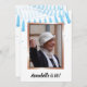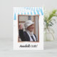 Light blue and rose gold eightieth birthday invitation. Front has one large photo (it's nice to see the birthday girl!), blue tassels at the top. Back side has an "80 and Amazing" logo, with party details below.