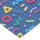 Multicolored chequered retro vintage 80s Memphis fasion style pattern on a blue background.