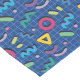 Multicolored chequered retro vintage 80s Memphis fasion style pattern on a blue background.
