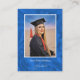 A distinctive blue abstract (with a satiny look) invitation card for your graduation party. The smaller size card gives you the option of mailing it separately with envelopes to desired guests -- or enclosing it, instead, with the appropriate announcement cards. The photo and all text are easily changed with the template. Selecting “Personalize this design” offers you several edit options to easily change the text (wording, plus type font, color, size, position) and to possibly edit the design elements. You may also want to scroll down to the section “Transfer design to a product” for a few suggestions about other items this design can be used on. If you have created an online website, the QR code can be very helpful for guests. NOTE: You can create a website by searching online for "free graduation website" - which should give you several sites that offer such a service.