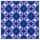 Bright abstract seamless pattern showcasing symmetrical blue geometric shapes with white accents, ideal for backgrounds or decorative designs to add modernity and vibrancy.