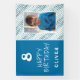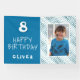 Blue Abstract Wave Boy Photo Happy Birthday Banner. The design has blue and white waves, blue background, fun text happy birthday and name. Add your photo and your name. Great for a boy`s birthday party.