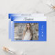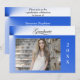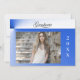 A modern card for a graduation party invitation with a blue colour scheme. The blue ray spreads from a single point at top left. A similar background on the back of the card holds the invitation details. The year of graduation text on the front and information text on the back is easily changed by using the template. The same holds true for the photo. For any other desired changes (different type fonts, colour, size or position OR to resize or reposition the "Graduate" text image on the front), select "Personalize this design" then select "Edit using Design Tool." Although the text specifies a high school graduate, it can, of course, be changed with the template to indicate a college or other institution.