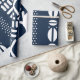 Dark blue unique, beautiful African inspired bogolan mud cloth pattern decorated gift wrap. Wrap a gift for your favourite person with this one of a kind personalized African motif style wrapping paper.