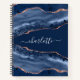 A dark blue and rose gold agate, marble stone print as background Personalize and add your name. The name is written with a modern hand lettered style script.
