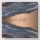 A dark blue and rose gold agate, marble stone print as background Personalize and add your name. The name is written with a modern hand lettered style script with swashes.