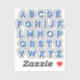 Uppercase cut out alphabet sticker set of blue characters with black drop shadow. The letter set is customizable for you to print out up to 26 characters of your choice (for example your name)