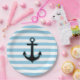 Blue Anchor, Boat Anchor, Ship Anchor, Stripes Paper Plate
